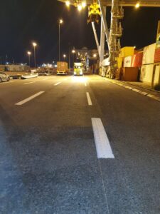 בכדי למנוע פקקים בעורקי התנועה הראשיים ולמזער את הפגיעה בציבור הנהגים, נהוג לצבוע את הכבישים בשעות הלילה.